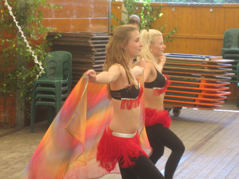 Anschließend verzauberten Lorena und Shari das Festzelt in einen Kalifenpalast aus 1001 Nacht. Mit ausdrucksstarken, stimmungsvollen Tänzen entführten die beiden jungen Damen die Gäste des Damenkaffees auf eine Sinnesreise, bevor als Zugabe die Gäste mit ins Geschehen einbezogen wurden und fleißig und ausgiebig mittanzen durften.