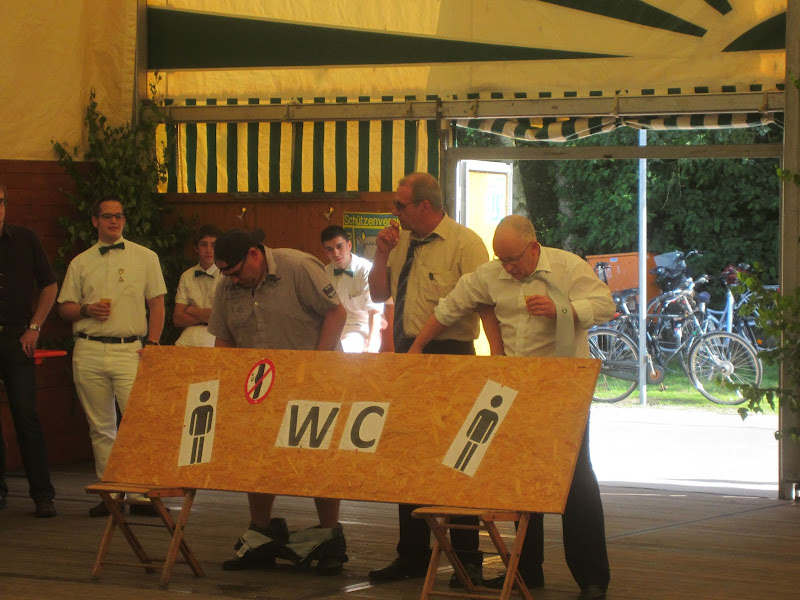 Dieter Heßelmann, Markus Becker und Volker Dieminger bewiesen später, dass auch Männer mehrere Dinge gleichzeitig können. Unter dem Titel „Mehrere multitaskingfähige mutige Männer müssen mal“ bewiesen sie, dass Männer auf dem stillen Örtchen nicht nur das Erwartete verrichten, sondern dabei auch noch – bei gegenseitiger Hilfestellung – Zigaretten anzünden, Bier trinken und gegenseitig „abschütteln“ können. Klar, dass die Darbietung Applaus fand und mit einer Zugabe beendet wurde, bei der unser König Detlef Schwarz „etwas feucht“ wurde.