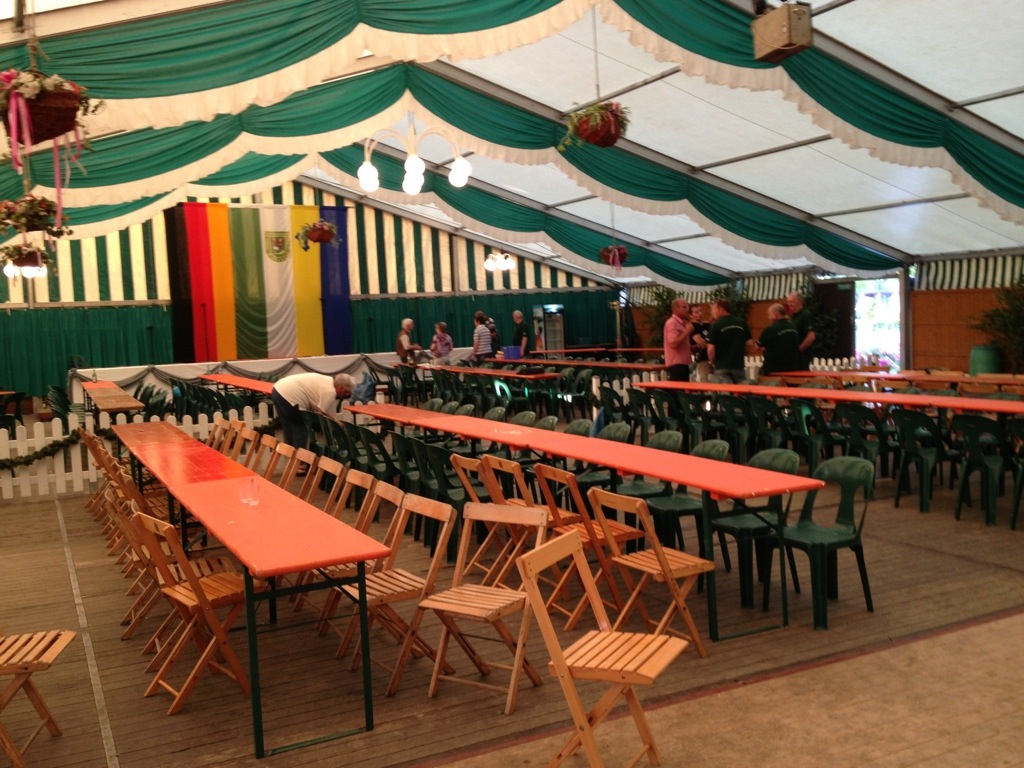 Zahlreiche aktive Kohvedeler kamen am Donnerstag zusammen um gemeinschaftlich das Festzelt zu schmücken, den Thron aufzubauen, Rosen zu binden, Birken anzubringen und den Schießstand vorzubereiten. Es gab viel zu tun, aber der Spaß kam nicht zu kurz. Und das ein oder andere bierhaltige Kaltgetränk wurde einer Qualitätskontrolle unterzogen.