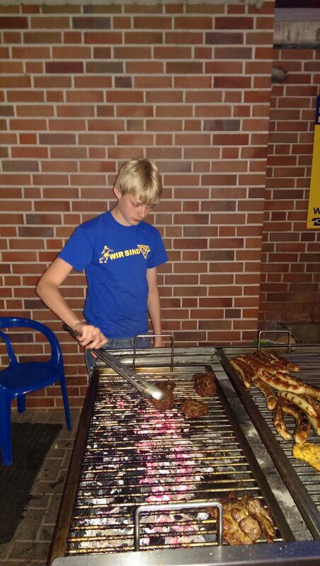 Eventuell war das auch gar nicht sooooooo schlecht. Durch das Aus in der Vorrunde konnten unsere Spieler den anderen Mannschaften bei dem ein oder anderen kühlen Bier und toller Stimmung im Stadion zusehen, angeregte Gespräche führen und sich um das leibliche Wohl kümmern. Tommy Elsbecker, als neuer Jungschütze sammelte erste Erfahrungen mit der Truppe und selbst der Fahnenschlagnachwuchs machte am Grillstand eine gute Figur. Insgesamt also eine gelungene Veranstaltung.