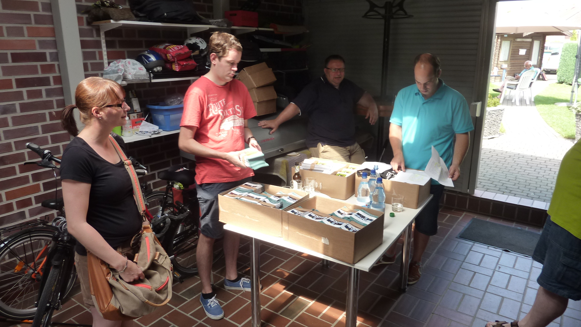 Trotz des vorabendlichen Sommerfestes in Leuste fanden sich zahlreiche Helferinnen und Helfer der Jungschützen, der Offiziere und des Vorstandes am Sonntag gegen Mittag bei Christian Becks ein, um erneut mehrere Tausend Flyer und Informationsbroschüren in unserem Bezirk an die Menschen bzw. in die Briefkästen zu bringen.