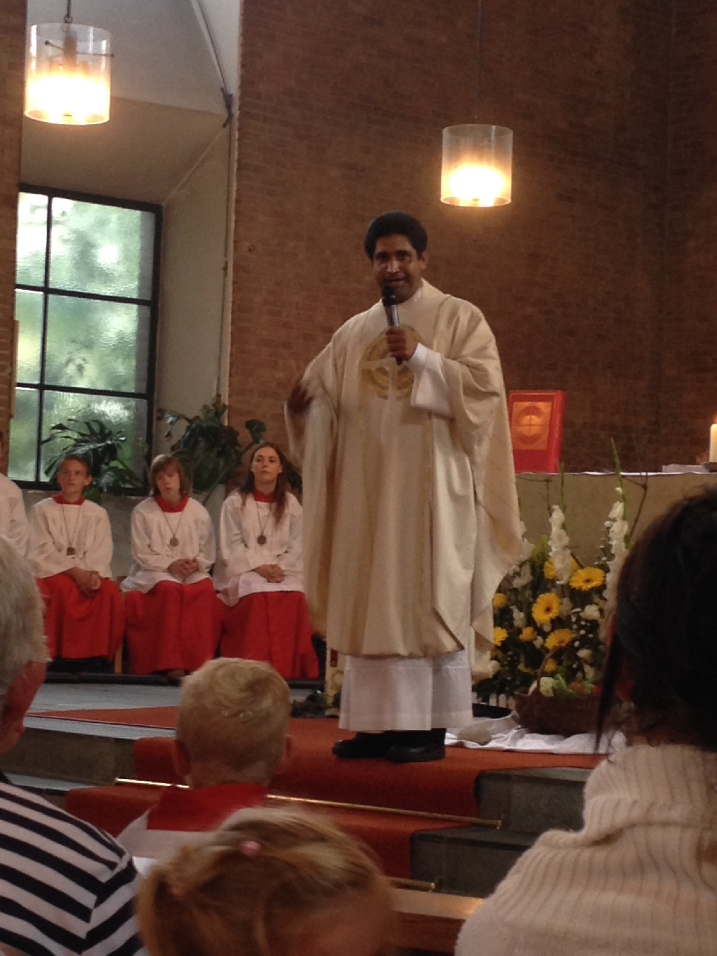 Davis Puthussery bedankte sich u.a. bei den Vereinen für die freundliche Aufnahme, machte aber auch deutlich, dass er sich auf seine neue Aufgabe in Hamm freue. Lustig wurde es zum Ende der Messe noch einmal, als er beteuerte, dass seine Haare immer noch nicht gefärbt seien und die Farbe natürlich sei. Als Botschaft und Wunsch an die Gemeinde gab Davis Puthussery den Gästen vor allem Barmherzigkeit und Warmherzigkeit mit auf den Weg und den Wunsch, die Kirche als „Eigentumswohnung“ zu sehen und nicht als „Mietwohnung“. Im Anschluss an die Messe hatten die Gäste noch die Möglichkeit, sich persönlich von ihrem Pfarrer zu verabschieden. Wir hoffen, Davis hält sein Kohvedel-Shirt auch in Hamm in Ehren und er findet dort ähnlich gute Aufnahme in einem Schützenverein, wie er dies in Kohvedel gefunden hat. „Horrido Davis!“
