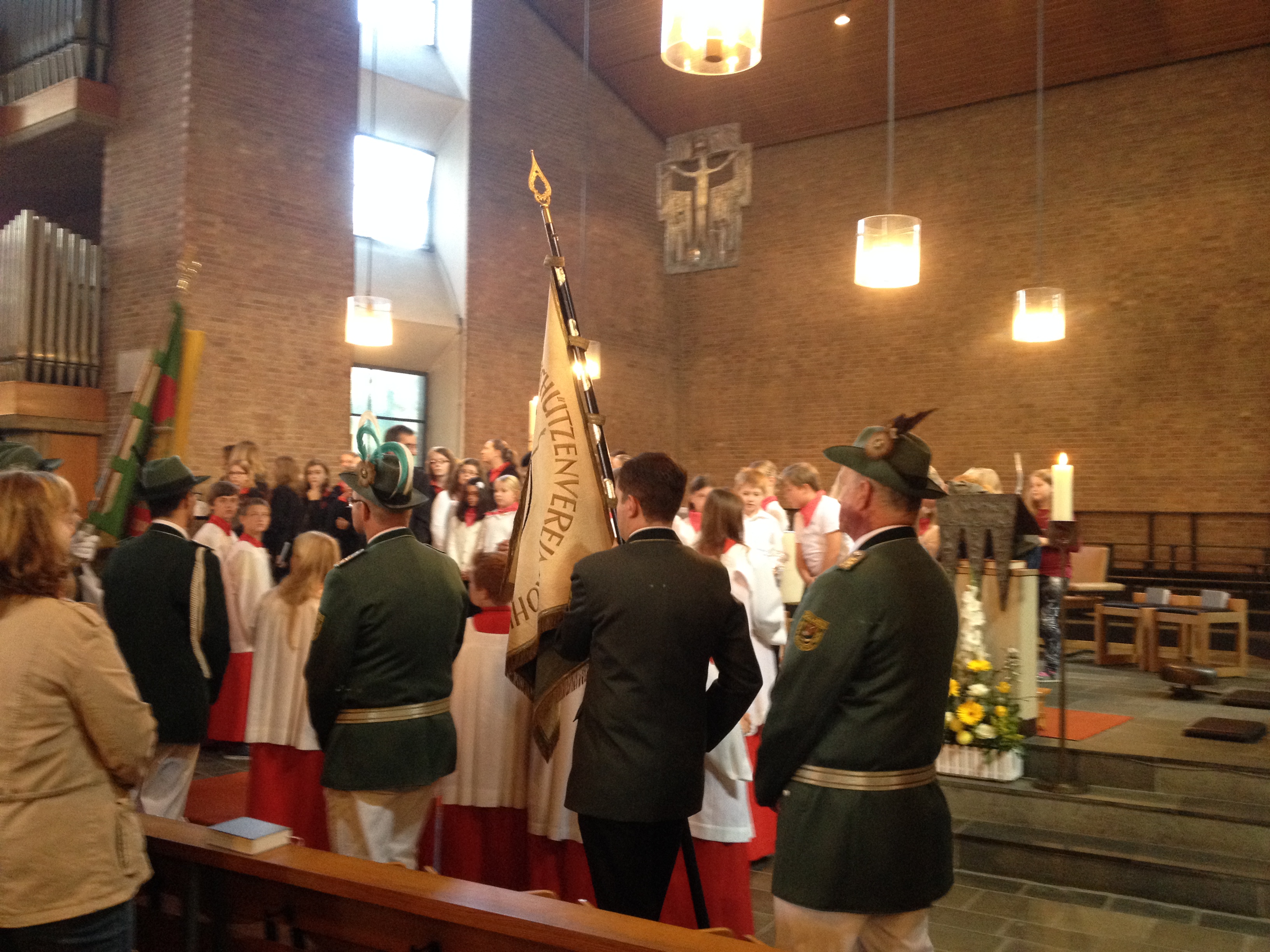 Zum Bersten gefüllt präsentierte sich die Kirche St. Joseph am heutigen Sonntag im Rahmen der Verabschiedung des Pfarrers Davis Puthussery. In einem feierlichen und emotionalen Hochamt zelebrierte Davis Puthussery seinen Abschiedsgottesdienst umrahmt von ca. 20 Messdienern und den zahlreichen Fahnen- und Festabordnungen der Vereine, so auch des Schützenvereins Kohvedel. Vorstandsmitglieder, Offiziere und Jungschützen, aber auch König Lothar Engbers und Ehrendame Bianka Brand nahmen an der Messe teil und erlebten in den knapp 2 Stunden Messe zahlreiche anrührende Momente.