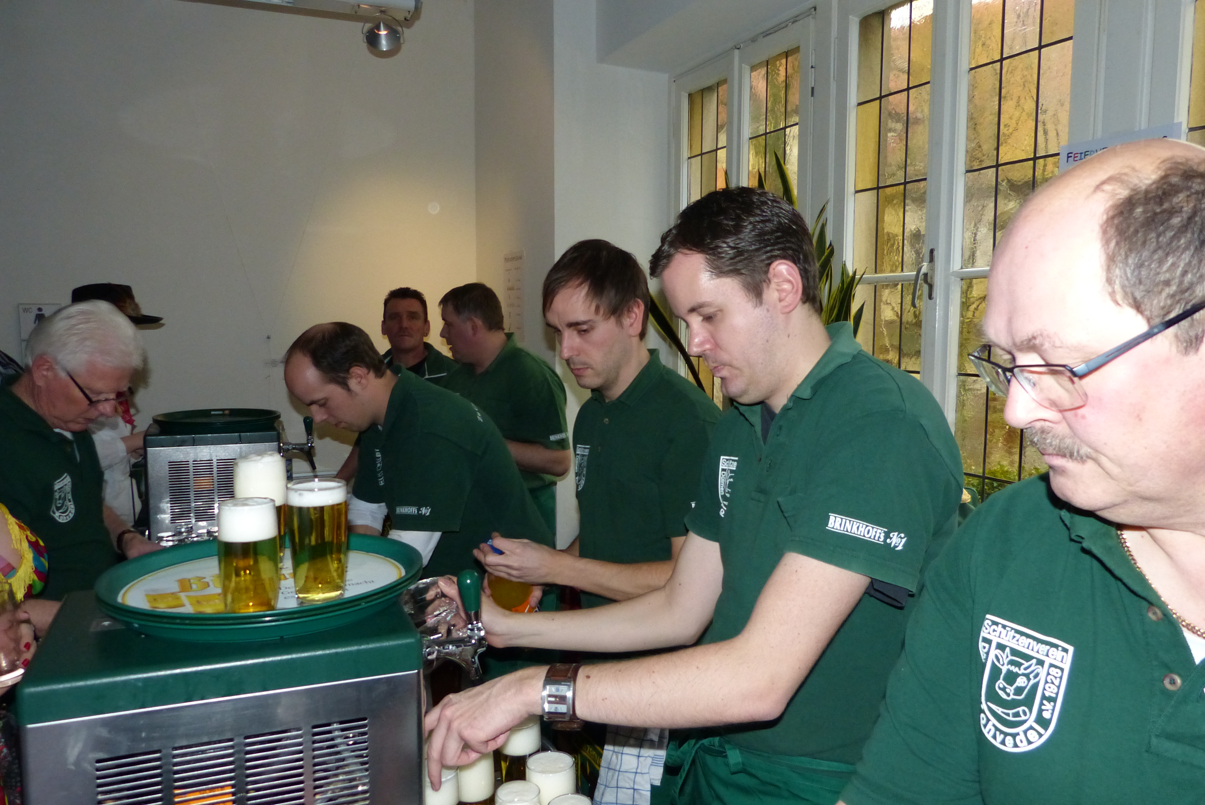 durstiger Kehlen und toller Stimmung kam bei den Helfern des Schützenvereins Kohvedel keine Langeweile auf und teilweise wurde im Akkord der Gerstensaft aus den Zapfhähnen gepresst.