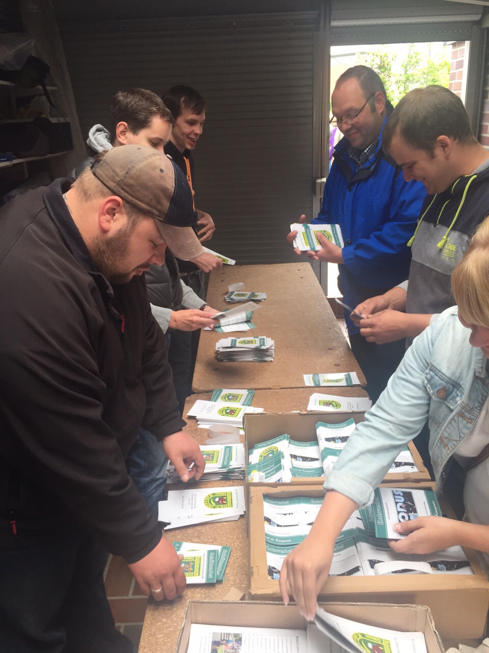 Oh mein Gott, warum muss Petrus zwischendurch die Schleusen öffnen? Das mag manche fleißige Helferin und manch fleißiger Helfer beim diesjährigen Flyer verteilen gedacht haben. Kistenweise Prospektmaterial mit dem Veranstaltungsflyer und mit dem Informationsflyer unseres Schützenvereins sind am Wochenende von zahlreichen Jungschützinnen und Jungschützen, Vorstandsmitgliedern und jungen Offizieren in unserem Bezirk verteilt worden. Mit dabei war auch der amitierende Jungschützenkönig Sebastian Wübbeling mit einigen Mitgliedern seines Throngefolges.