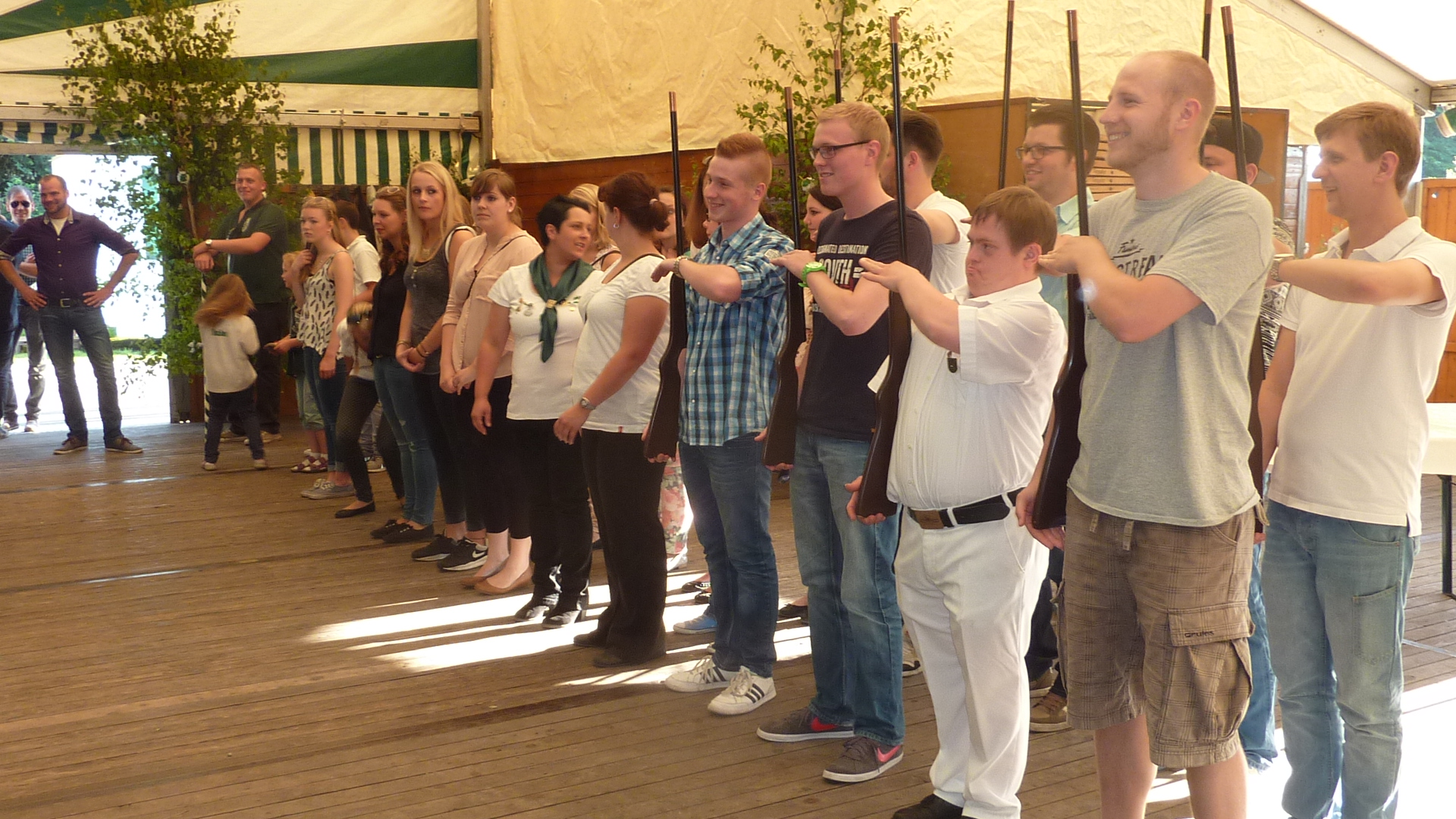 Dabei probten die Jungschützen nach der Gewehrausgabe das Antreten und wurden vom Kommandeur Guido Wensing auch schon mal in humorvoller Weise etwas „aussagekräftiger“ angesprochen.