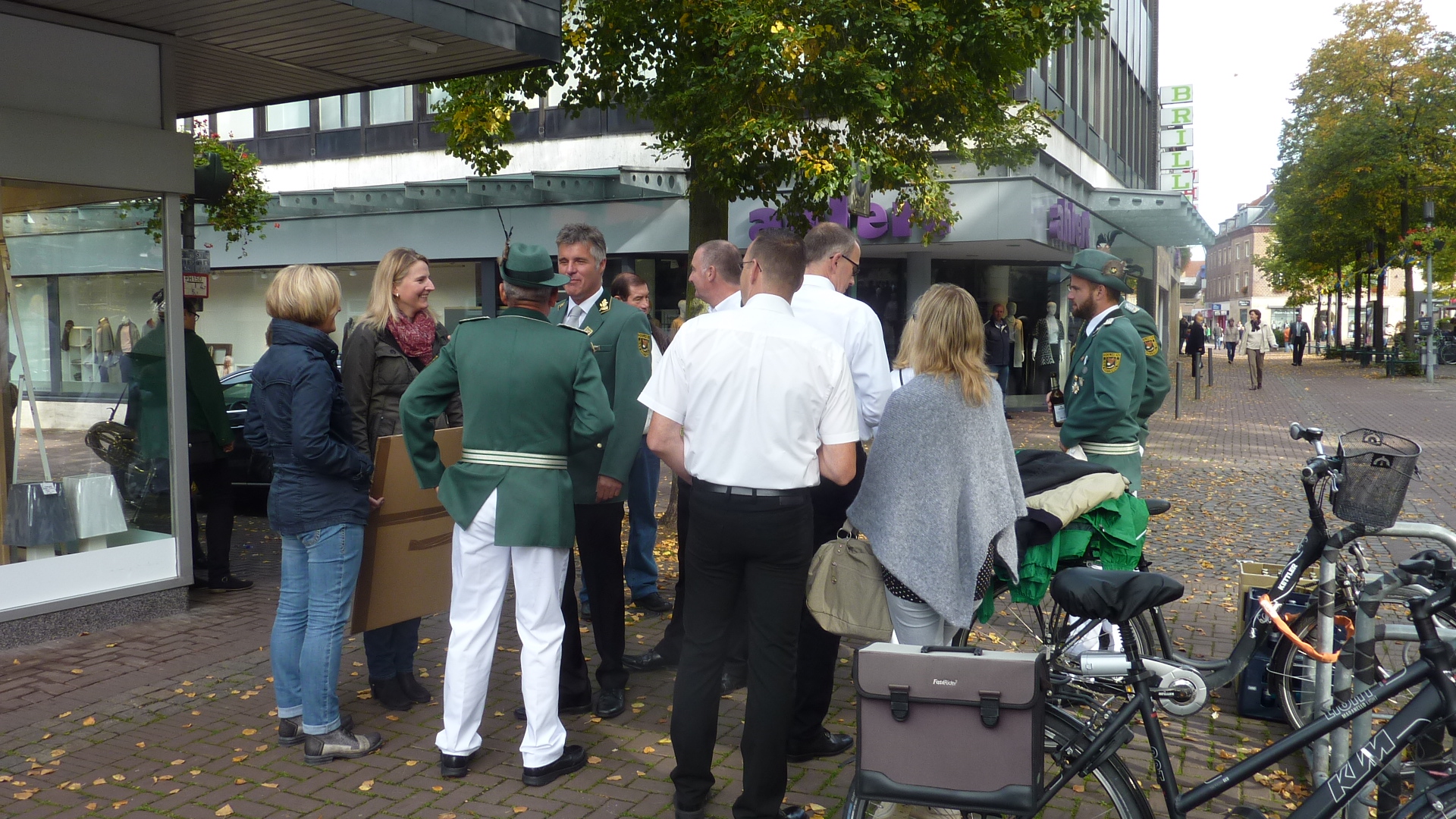Dabei hatte das Geburtstagskind eine perfekte Vorbereitung geschaffen. An allen Treffpunkten gab es reichlich Getränke und auch hochprozentige und -qualitative Startschluckgaben der Mitglieder des Spielmannszuges sorgten bereits lange vor dem Sternmarsch zum Marktplatz für gute Stimmung unter den Festteilnehmern.