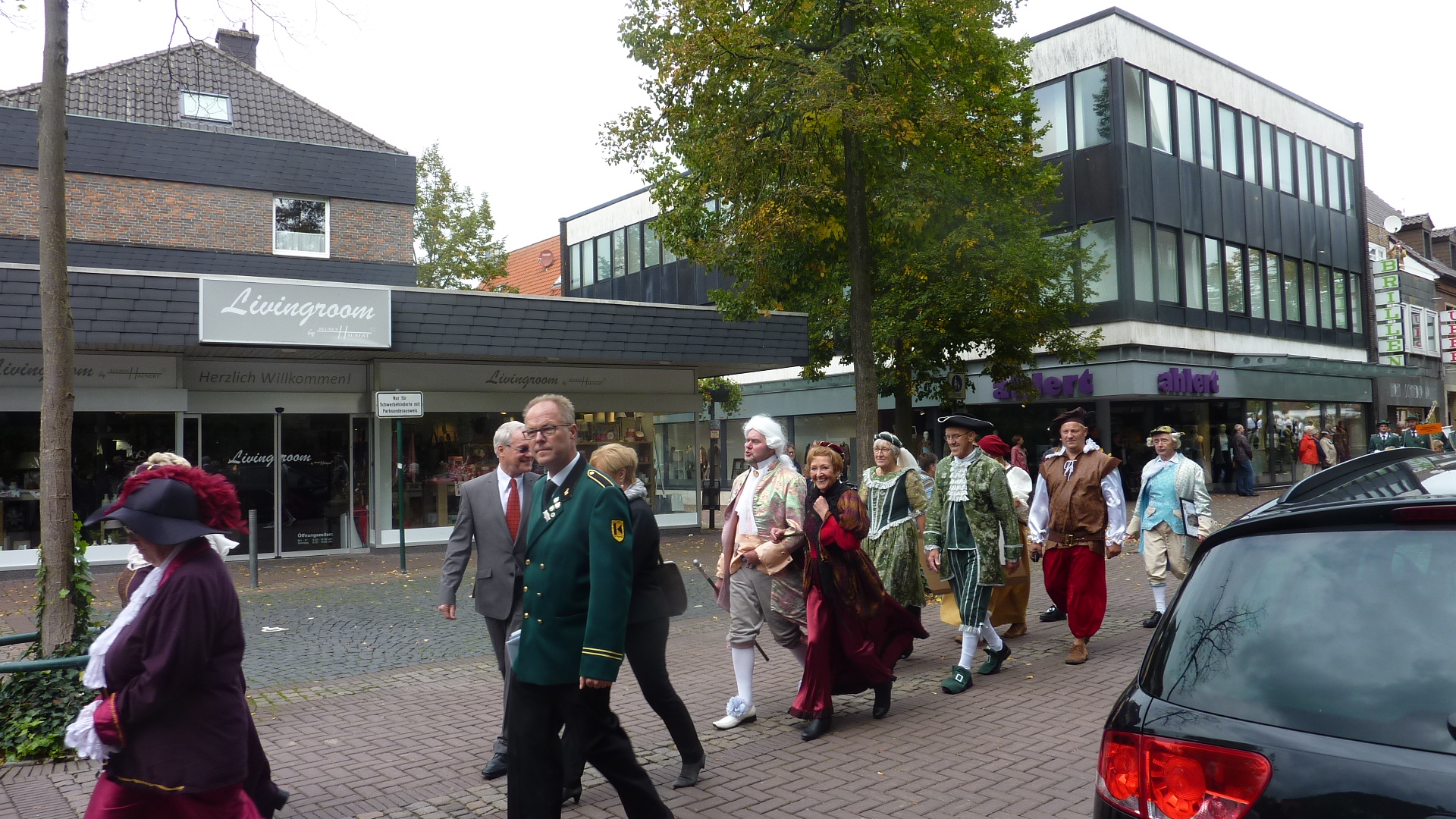 Mit klingendem Spiel zog die Festgesellschaft anschließend wie ein Lindwurm durch die Innenstadt Dülmens, bis dann endlich das Kolpinghaus erreicht wurde und der zwischenzeitlich entstandene Durst gelöscht werden konnte.