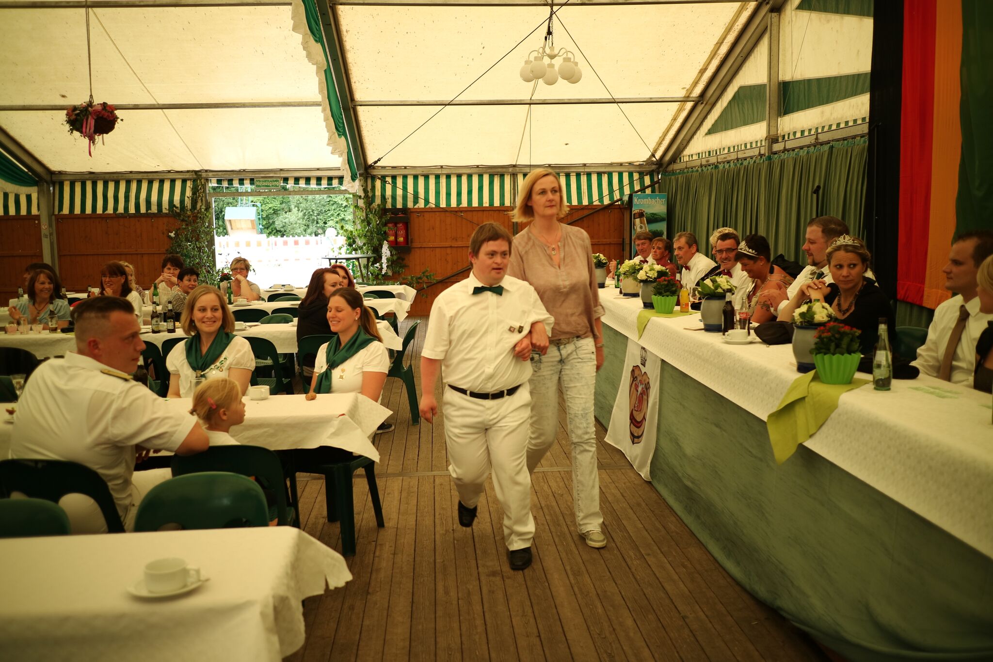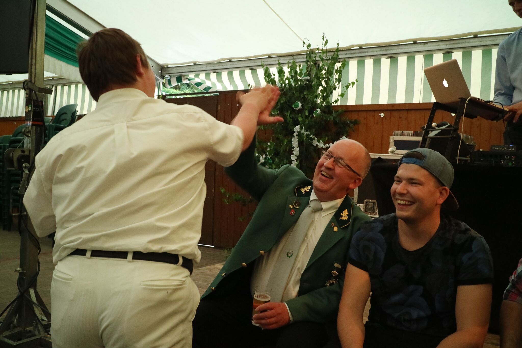 Nach dem Ausmarsch ging das Fest nahtlos in den Schützenfestauftakt für alle über und viele Damen sind dem Wunsch des Vorsitzenden gefolgt, doch einfach im Zelt zu bleiben und weiter zu feiern. „Das hat mich sehr gefreut, denn es ist ja keine Jungschützenparty, sondern der Festauftakt für alle“, zeigte sich Volker sehr zufrieden.
