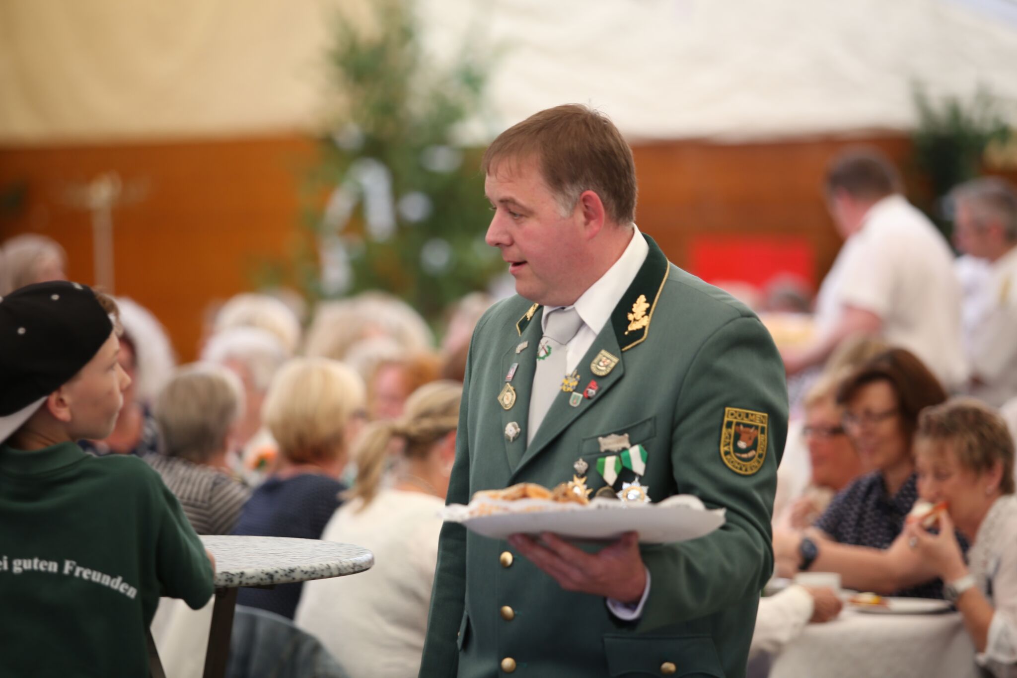 Die Kinder konnten, sofern gewünscht, den Nachmittag bei professioneller Betreuung im Kinderhaus am Luchtbach verbringen, so dass die Damen völlig entspannt den Nachmittag genießen konnten. Dabei wurden sie umsorgt und verwöhnt von den Offizieren und Jungschützen, die den Service übernahmen und die Damen mit allen Köstlichkeiten verwöhnten. Dazu gehörten dann auch Kaltgetränke im Nachgang des Kaffeetrinkens. Die Bäckerei Böckmann hatte wieder neben den obligatorischen Kuchen und Schnittchen hoch interessante Leckereien geliefert, die reissenden Absatz fanden.