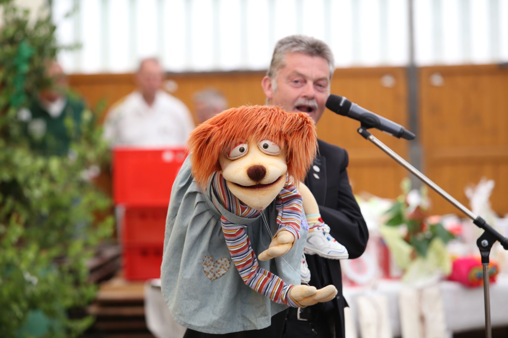 Höhepunkt des Nachmittags war natürlich Egbert Brede alias „Ette und Lilly“. Ein Bauchredner, der mit seiner Puppe Lilly die Herzen der Damen im Sturm eroberte und die Lachmuskeln aufs Äußerste strapazierte. Ette und Lilly hatten zahlreiche Kohvedeler aufs Korn genommen und so bekamen neben Yvonne Kadiri und Lothar Engbers vor allem Björn Strietholt, Volker Dieminger, einige „gackernden Damen“ und die Bedienungen an den Tischen von Lilly zahlreiche Sprüche zu hören.