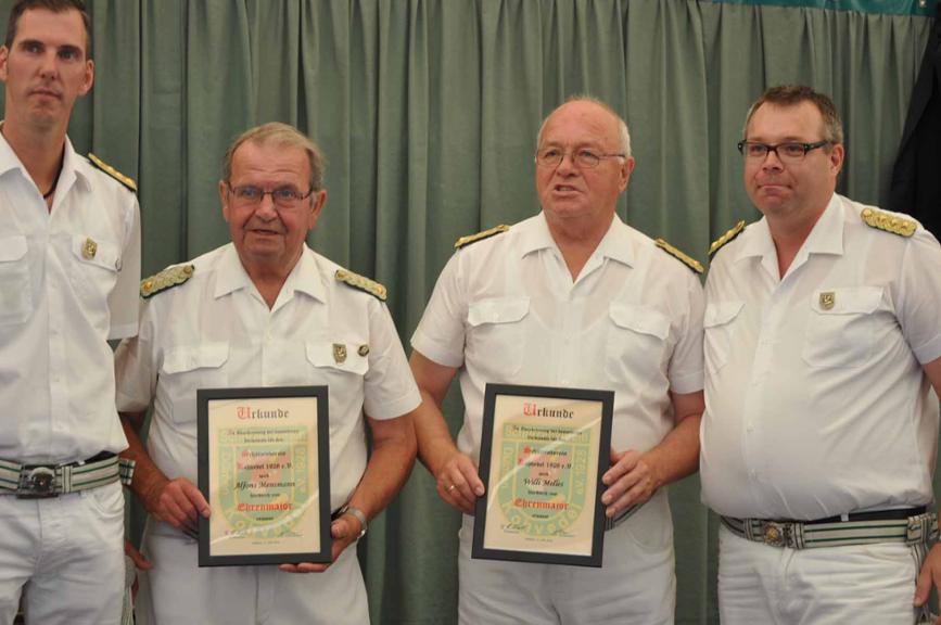 Eine besondere Ehrung wurde Alfons Mensmann und Willi Melles zuteil. Beide langjährige Offiziere wurden zu Ehrenmajoren ernannt.