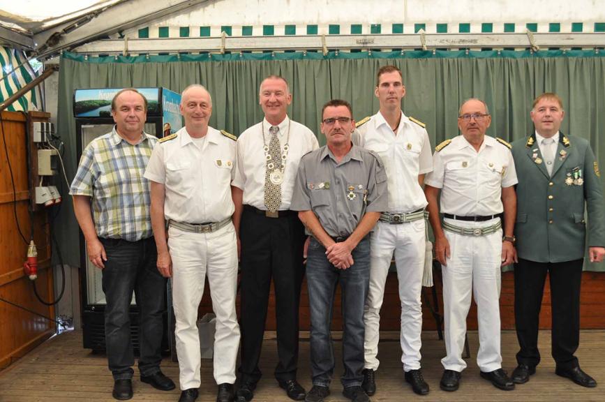 Neben der Ehrung der 25 jährigen (Hermi Fauler und Lothar Engbers) und 40 jährigen Jubilare (Ernst Hofmann, Franz-Josef Mensmann, Werner Wewerink und Horst Winkler) sowie dem Silberkönig Gottfried Neumark überreichte der Vorsitzende dem Offizier Markus Becker den Orden für besondere Verdienste im Verein. Dies insbesondere für die langjhährige Organisation des Kohvedel Cups.