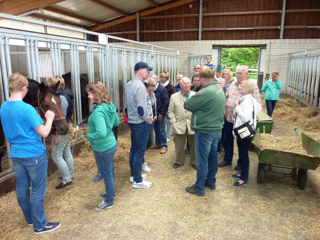 Dort übernahm Günther Voss die Führung der Gruppe und erläuterte sachkundig, tiefgreifend, aber auch mit einer gehörigen Portion Humor und Augenzwinkern die Aufgaben auf einem derart großen Gestüt. Rund 100 Pferde wollen dort umsorgt, geschult und erzogen werden.