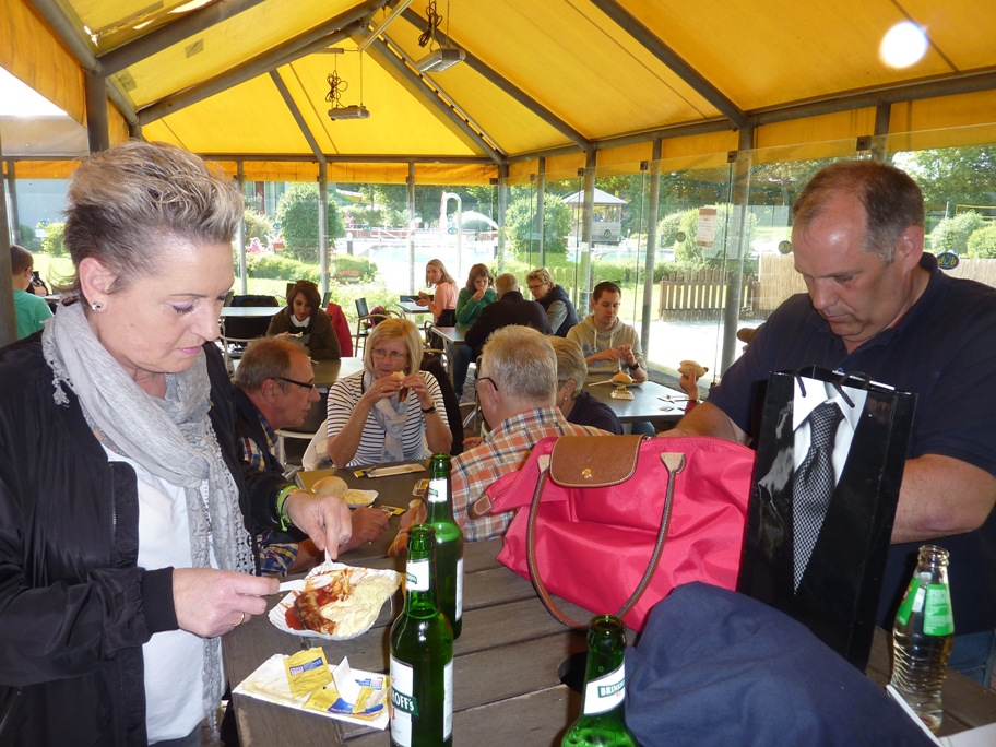 Am düb angekommen, wartete Anja Vetter gemeinsam mit ihrem Mann Reinhard bereits mit schmackhaften Grillwürstchen und Steaks auf die Truppe. Anja wollte sich mit dieser Aktion für die gute Zusammenarbeit zwischen Kohvedel und düb bedanken. Eine Führung durch die Technik des Freizeitbades rundete den Nachmittag ab und so konnten alle zufrieden und gestärkt den Heimweg antreten, oder sich anschließend auf dem Schützenfest in Börnste wieder treffen.