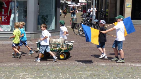 Draußen versorgten die Erzieherinnen des Kinderhauses Am Luchtbach die Kinder mit Unterhaltung und riesigen Seifenblasenspendern.