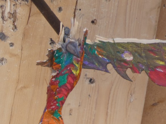 Bei den Jungschützen ging es ähnlich zügig und ernsthaft an den Vogel „Flocke“, der seinen Namen von Isabella Jasper und sein buntes Federkleid von den Kindern des Kinderhauses Am Luchtbach erhalten hatte. Nachdem sich die Reihen der Anwärter bei den Jungschützen lichteten blieben Philipp Schieve und dessen Freundin Lea Dieminger als ernsthafte Schützen übrig.
