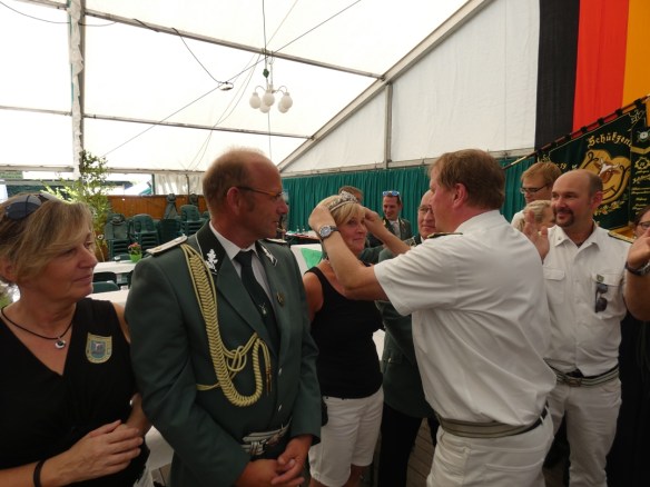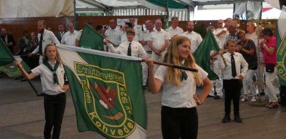 Anfänglich tummelten sich noch zahlreiche Schützen unter dem Stand und nahmen das Federvieh ins Visier. So auch unser Vorsitzender Volker Dieminger, der einmal sagte, er würde nur dann zur Vogelstange gehen, wenn er auch König werden will. Für einige aktive Kohvedeler zeigte sich von daher bereits frühzeitig, was sich später bestätigen sollte.