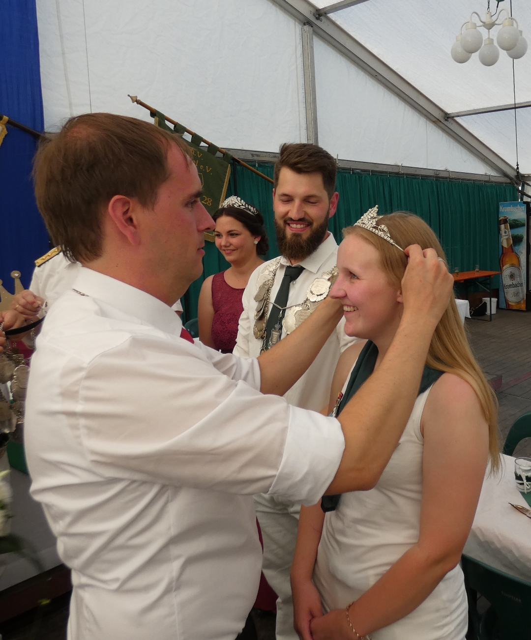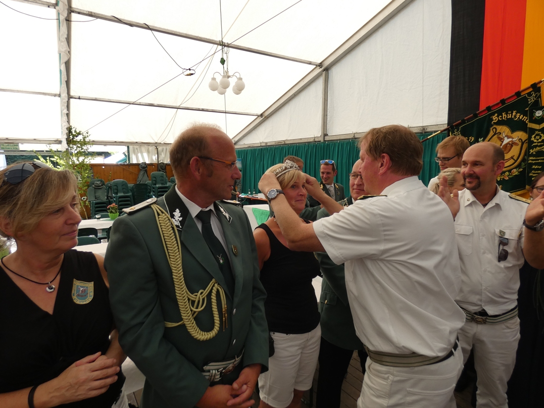 Auch hier war der Jubel groß und vor allem Volker Dieminger freute sich, dass sein Wunsch nach einem gemeinsamen Thron mit seiner Ehefrau, seiner Tochter und ihrem Freund in Erfüllung ging. „Das war schon im letzten Jahr unser Wunsch, allerdings kam uns da die Gesellenprüfung von Lea dazwischen, schön das es jetzt geklappt hat“, strahlt der Vorsitzende mit der Sonne um die Wette.