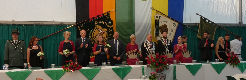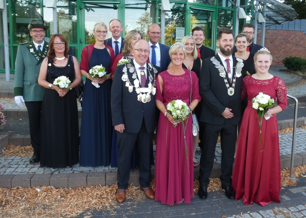 Neben Volker und Marlies Dieminger wird der Altschützenthron ergänzt durch die Ehrenpaare Martina Gotteswinter und Andreas Feldmann, sowie Annegret und Heinz Pankock. Ebenso begrüßte er beim Altschützenthron auch die Freunde des Königs und das derzeit amtierende Kaiserpaar aus Finnentrop im Sauerland Petra und Michael Peuker.