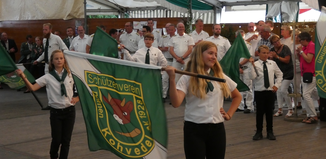 Bei den Jungschützen werden König Philipp Schieve und seine Königin Lea Dieminger begleitet durch die Ehrenpaare Sabrina Mensmann und Dominik Schieve, sowie Jana Sandkühler und Chris Hommer.