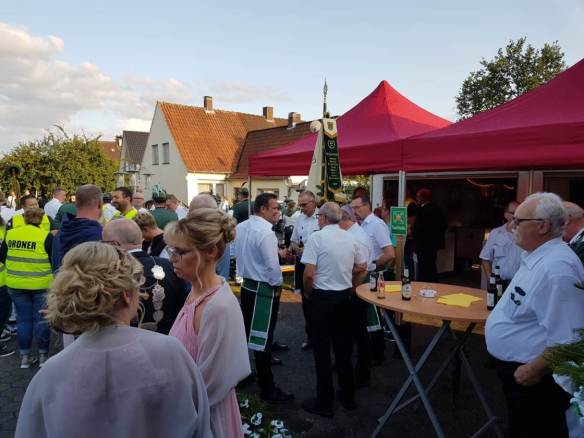 „Unser Zelt war recht früh gut gefüllt und es kamen immer weiter Gäste, die mit uns feiern wollten, wir haben uns riesig gefreut“, war Christian Jasper über den Verlauf des Abends sehr froh. „Unsere Freunde aus Leuste, die an dem Abend die Abendkasse besetzten und den Einlass regelten hatten zum Schluß gerade noch 3 Einlassbändchen übrig, mit so einem Andrang haben wir nicht gerechnet“, war auch Kassierer Christian Becks mehr als zufrieden mit dem Fest.