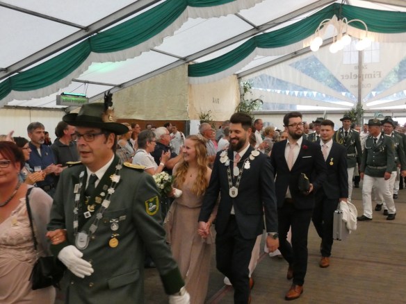 Nach einer Stärkung und dem ein oder anderen Kaltgetränk setzte sich der Lindwurm in Bewegung und fast pünktlich um 20:40 Uhr marschierten die Throngesellschaften und ihre Gäste ins Zelt ein.