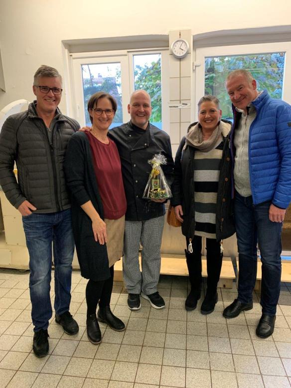 Überbrachten die Glückwünsche des Vereins und ein kleines Präsent an Beatrix und Andreas Böckmann (2. und 3. von links). Christian Becks, Sabine und Thomas Elsbecker