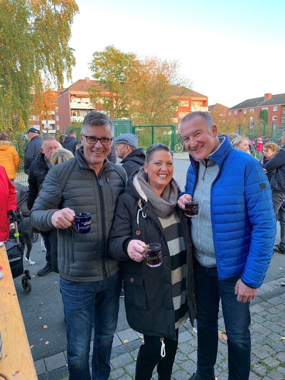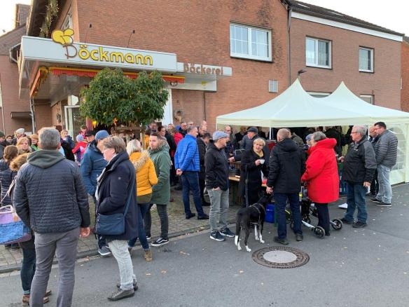 Vor Ort ließen sie es sich die drei Offiziellen gut gehen und beobachteten die zahlreichen Kinder, die vor Ort Martinsgänse gestalteten oder die Backstube ausgiebig untersuchten, tranken schmackhaften Glühwein, probierten Käse aus der Hafenkäserei Münster oder Leberbrot und Wurstebrot von der Fleicherei Lengers, kamen mit den Gästen und vielen Kohvedelern ins Gespräch oder staunten über den transportablen Backofen, in dem schmackhafte Brote zur perfekten Bräune gebracht wurden.