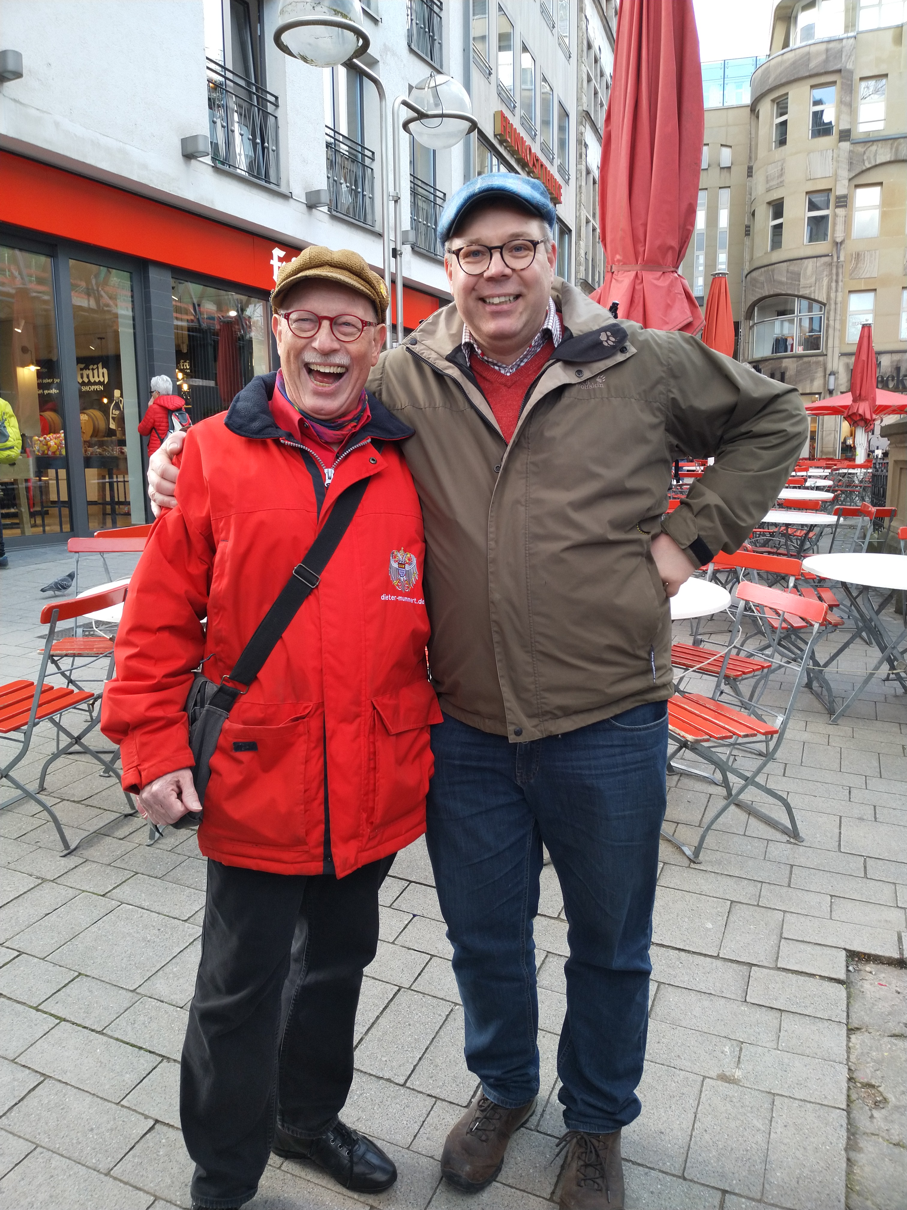 Aber nicht nur verschiedende Brauhäuser wurden angesteuert – in denen es übrigens jeweils nur ein Kölsch gab – sondern auch viele historische Stätten wurden besucht und die Kohvedeler bekamen interessante und spannende Hintergrundinformationen zum Beispiel zu den Heinzelmännchen, die nur deshalb nicht mehr die Arbeit erledigen, weil eine neugierige Frau sie verscheucht hat. Oder das die Roten Funken eigentlich eine ganz feige Truppe waren, die seinerzeit ohne Gegenwehr die Stadttore für die Franzosen geöffnet haben, heute aber ein umfangreiches Aufnahmeritual für neue Funken praktizieren.