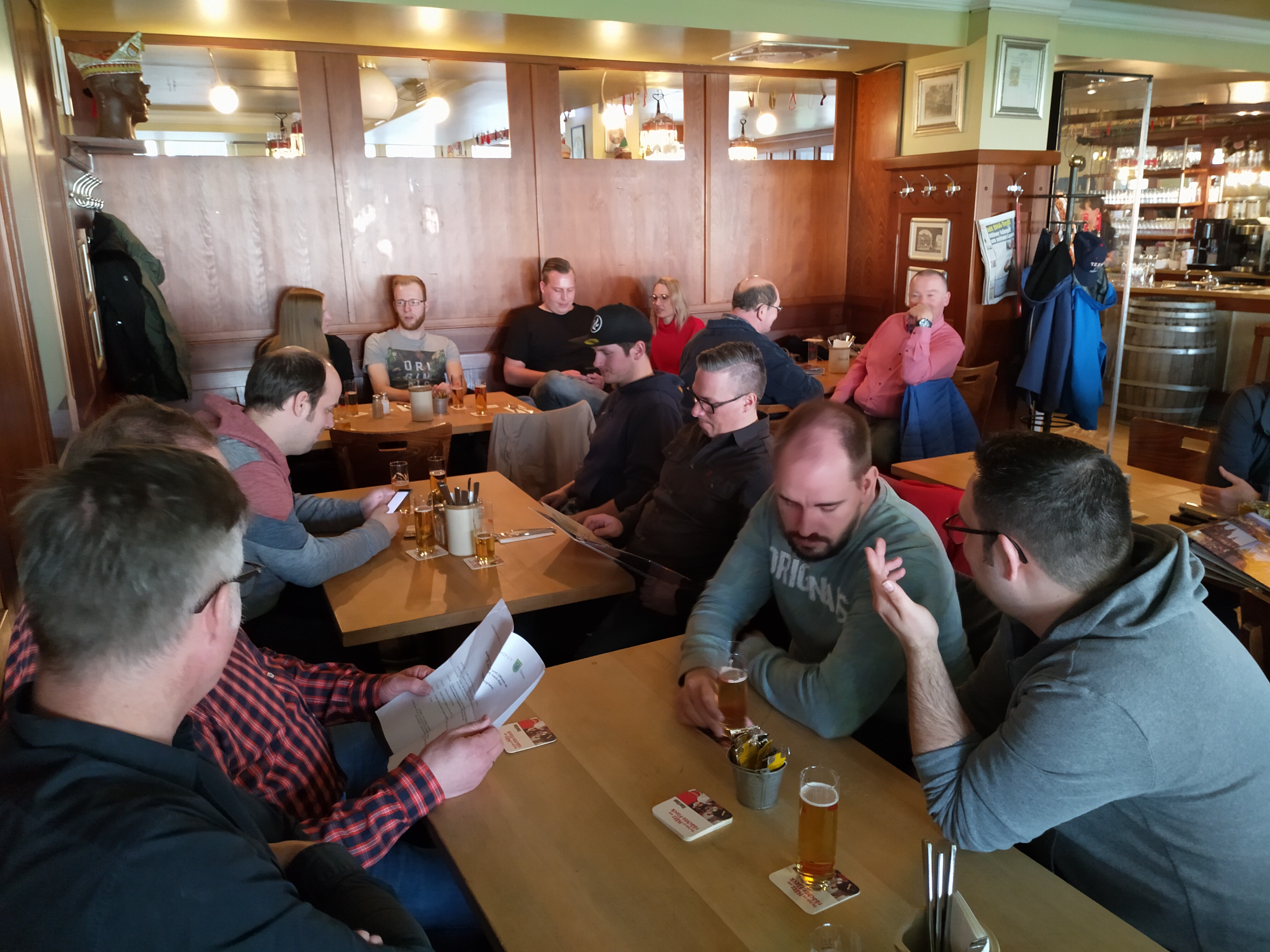 Den Abschluss der Tour bildete die Einkehr im Stapelhaus, wo sich die Truppe bei typisch Kölner „Himmel und Äd“, einem Halve Hahn oder einem 500 Gramm Kotelett stärken konnte, bevor die Truppe die Rückreise in „vollen Zügen“ genießen konnte.
