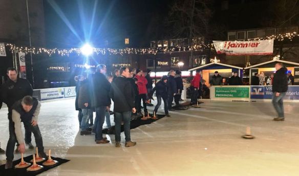 Nach dem Dank an die Servicekräfte des Schützenvereins Kohvedel, die sich engagiert um das leibliche Wohl der Teilnehmer gekümmert hatten, sowie an die Turnierleitung mit Werner Wewerink, Hermi Fauler, Timo Becker und Mirja Becks sowie dem Dank an die Schützen aus Hiddingsel für das „Dankeschön-Geschenk“ in Form einer Flasche Lagerkorn „Die ist noch verschlossen!“ wurden die Sieger und Platzierte noch ausgiebig im Foyer der Dreifachhalle gefeiert.