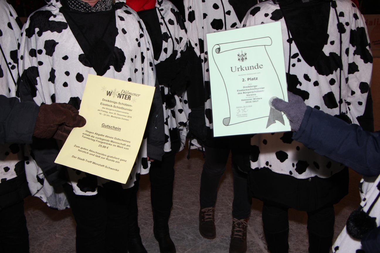 Der größte Jubel auf der Bahn war aber bei den Eiskühen über den zweiten Platz zu erleben. Die Damen und die zahlreichen Anhänger feierten ausgelassen die Silbermedaille. „Wir haben es noch nie ins Finale geschafft und haben uns jetzt nur dem Verein geschlagen geben müssen, der in der letzten Woche noch ein intensives Trainingslager auf der Eisbahn durchgeführt hat. Wir hingegen haben unser Training in die Rodelhütte und an den Stadttreff verlegt, so dass ich mega stolz auf unsere Damen bin,“ resümierte ein mehr als zufriedener Vorsitzender am Ende des Abends.