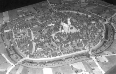 Modell der Stadt Dülmen zur Zeit des Dreißigjährigen Krieges ( 1618 – 1648 ) Gut zu erkennen sind die Tor-und Wallanlagen der Stadt