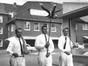 in dieser Zeit von irgendeinem, von der Art nicht näher bezeichneten Vogel. Erst im 14. Jahrhundert ist aus den Gebieten des Niederrheins das Schiessen auf den Papagei überliefert. Diese Art wird für die nächsten Jahrzehnte der Begriff für den Schützenvogel überhaupt. Sogenannte „Papageiengesellschaften“ sind aus großen Städten, wie Hannover, Bern und Wismar überliefert. Der Adler als Schützenvogel kommt erst im 16. Jahrhundert auf. In Westfalen ist er allerdings ab 1700 nachweisbar. Frühe Darstellungen zeigen, das Form und Aussehen vom Brandenburg-preußischen Wappenvogel entlehnt wurden.Vielleicht herrschte hinter dem Adlerschiessen der Gedanke, dass der König der Lüfte nur von einer Person heruntergeschossen werden konnte, die auch zur Königswürde fähig war.