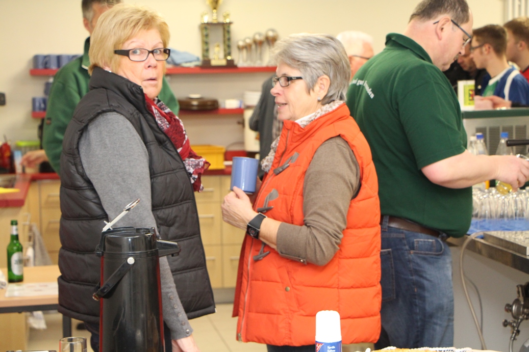 Egal ob Jungschützen, Altschützen, Offiziere, Vorstand oder Ehepartner. Alle waren beteiligt, um Brötchen zu belegen, Würstchen zu erhitzen, Getränke zu zapfen oder Kuchen zu verkaufen. So konnten sich nicht nur die Spieler der einzelnen Mannschaften in den Spielpausen ausreichend stärken, auch die zahlreichen Zuschauer in der voll besetzten Dreifachturnhalle des CBG konnten sich von der Qualität der Gerstenkaltschalen, Dammhueser Knacker, der selbstgezauberten Kuchen oder auch knackigen Brötchen überzeugen.