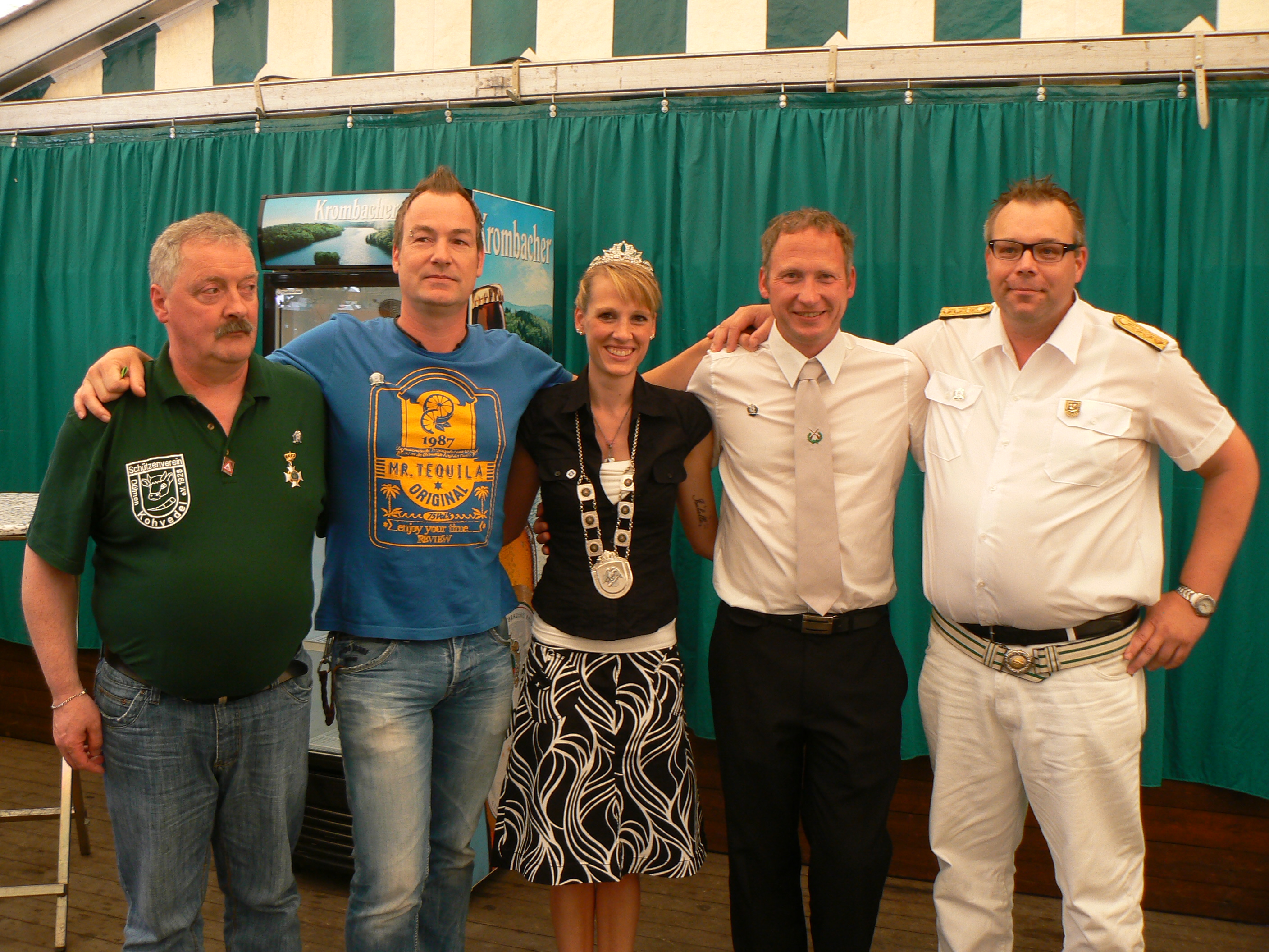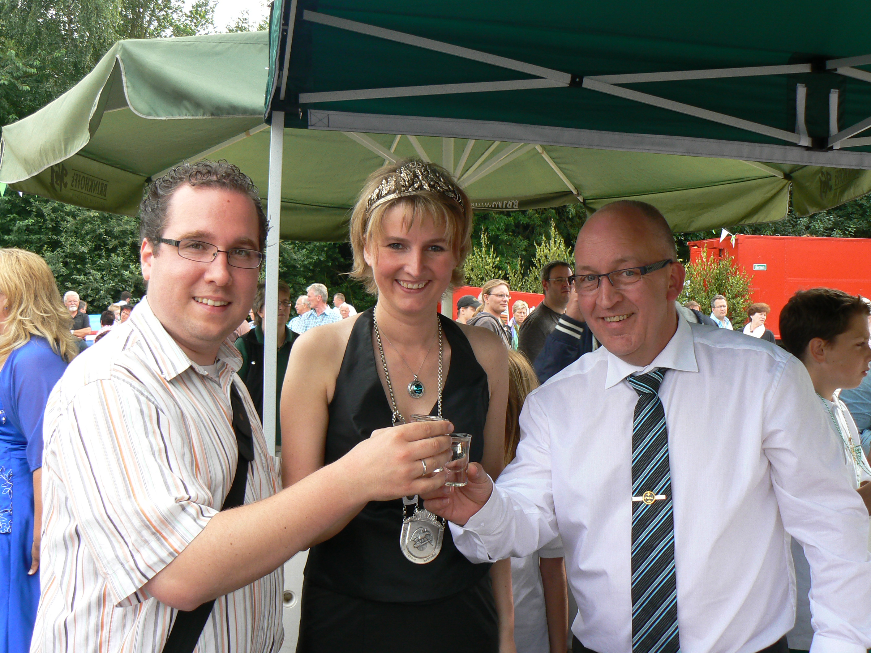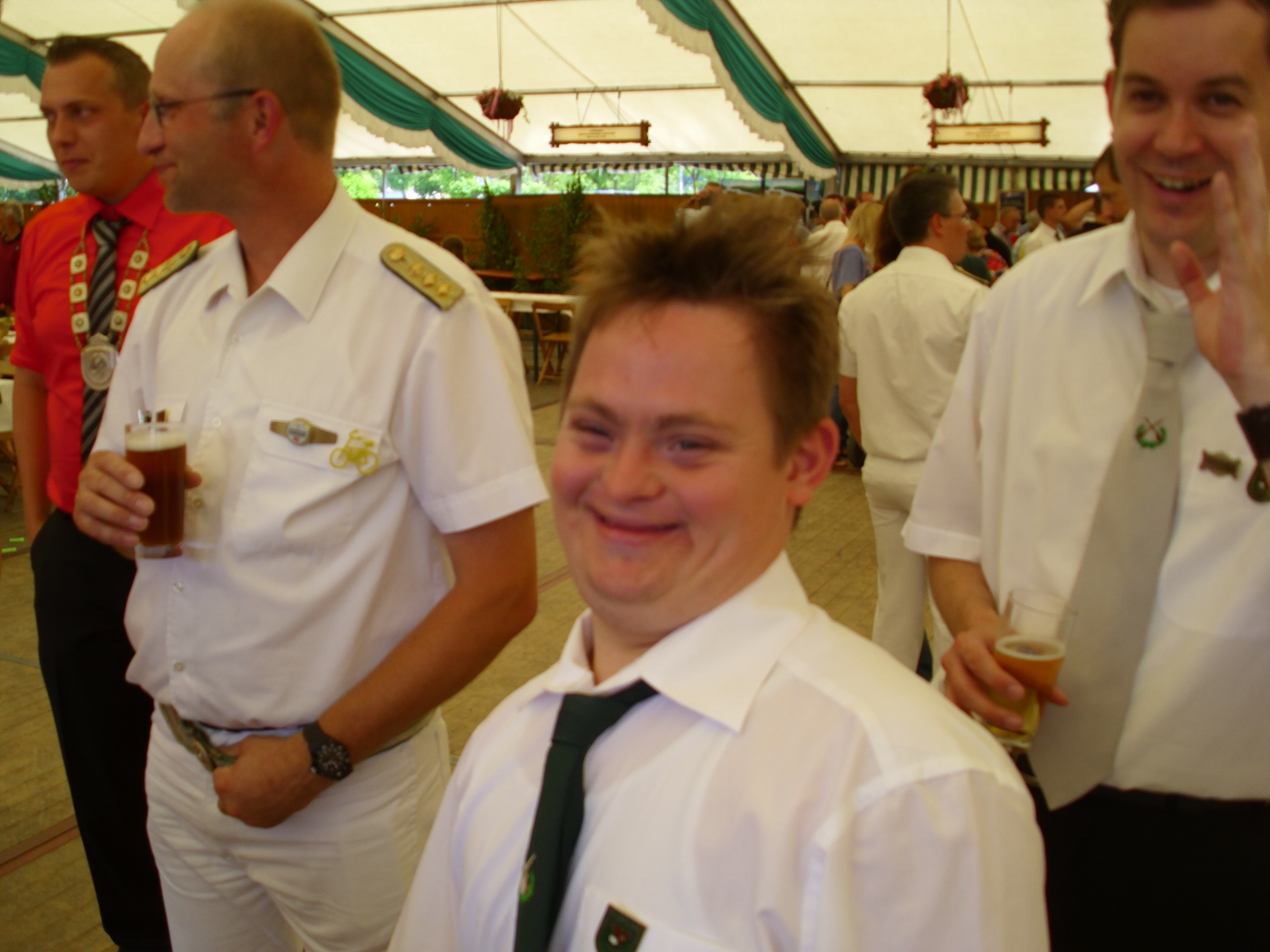 Aber nicht nur unsere Königin Vanessa und ihr Prinzgemahl Alex (gleichzeitig Jungschützenkönig) nebst ihrem Throngefolge ehrten die Karthäuser durch ihre Teilnahme. Isabella, die Tochter der beiden Majestäten ließ es sich trotz einiger unangenehmer Impfnachwirkungen und ihres ersten Geburtstages nicht nehmen, den Karthäusern am Nachmittag standesgemäß mit Krone und entsprechend aussagekräftigem T-Shirt („zur Prinzessin geboren“) ihre Aufwartung zu machen.