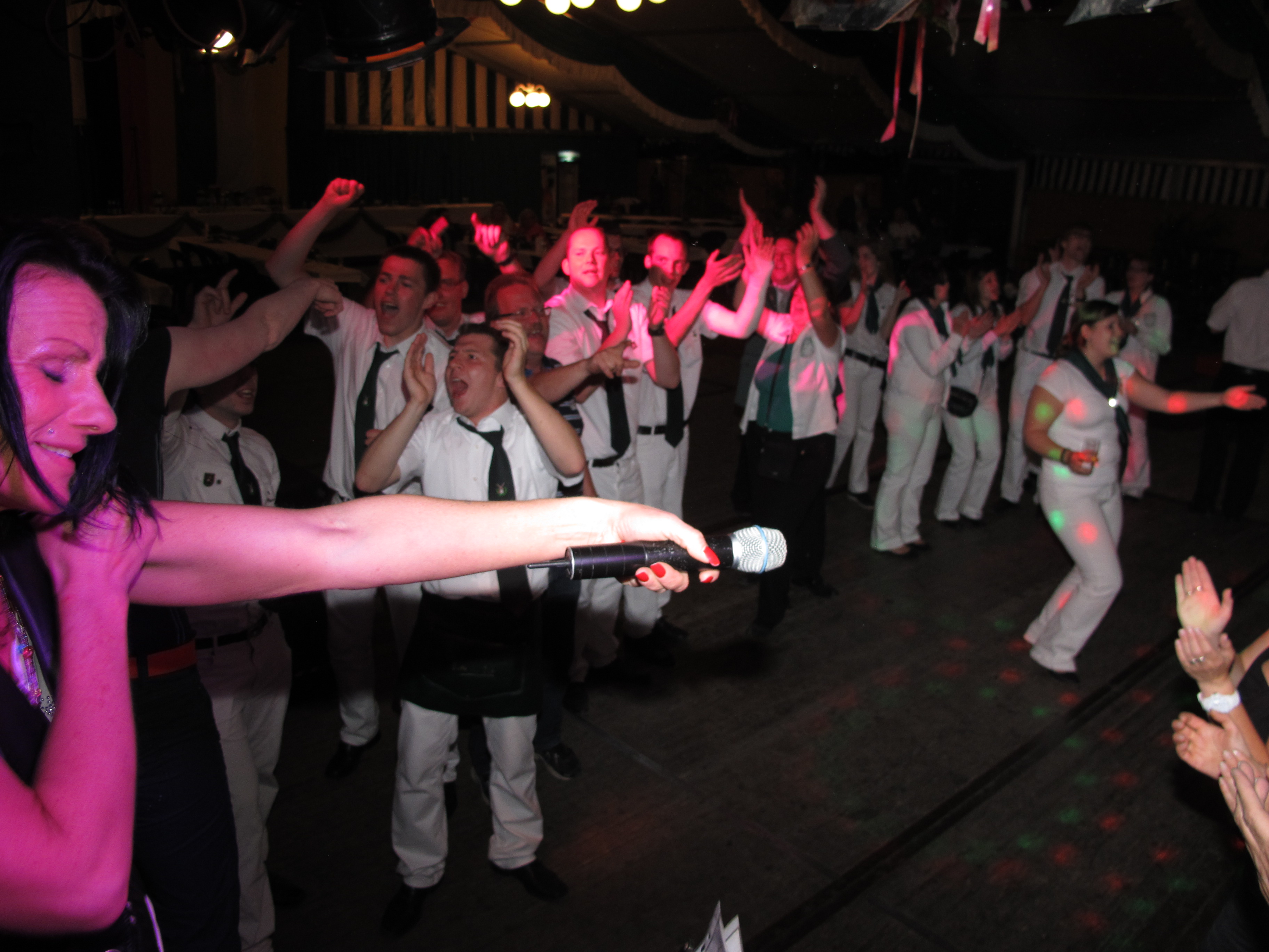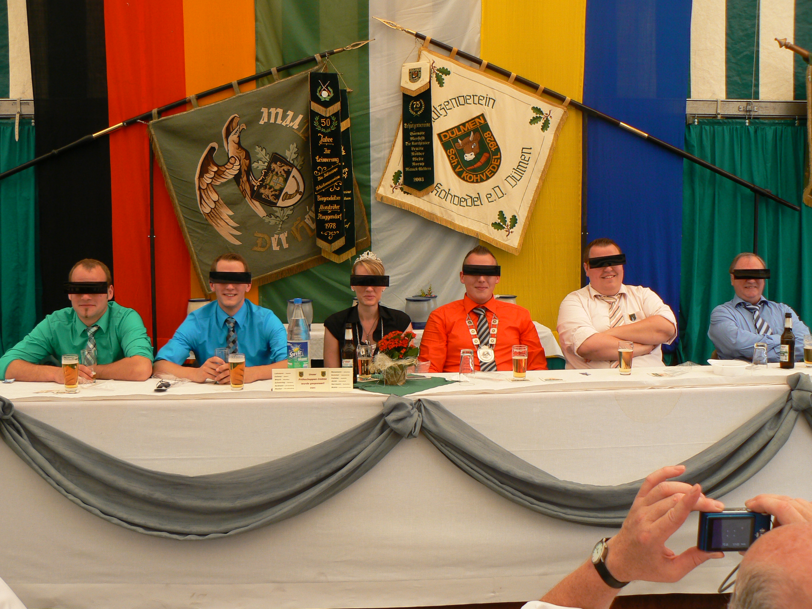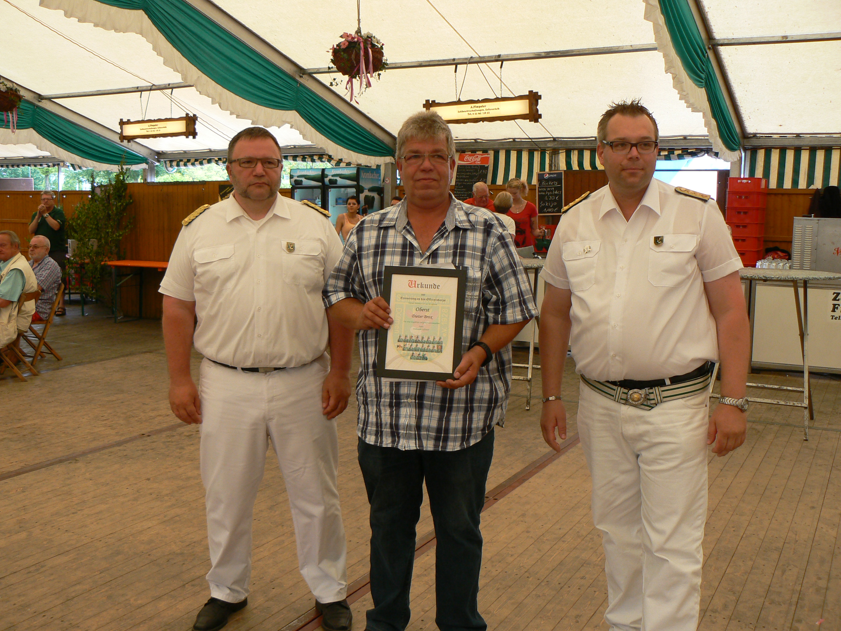 Auch die neuen Offiziere bestanden ihre erste Feuertaufe mit Bravour und so konnten Andreas Feldmann, Jonas Winkler und Dennis Niewerth auf einen gelungenen Einstand ins Offizierskorps blicken. Lukas Jansen als Mundschenk darf seine Uniform leider erst später präsentieren. Dieter Heßelmann, der für die verhinderten Kommandeure Wolfgang Sicking und Björn Strietholt beim Jubiläum die Führung des Verbandes übernommen hatte, zeigte sich ebenfalls sehr zufrieden mit seinen (nicht nur neuen) Offizieren. In seiner bewusst bescheidenen aber äußerst präzisen Art, die Dinge auf den Punkt zu bringen, ließ er sich nach Abschluss der Veranstaltung ein „Prima gemacht“ entlocken.