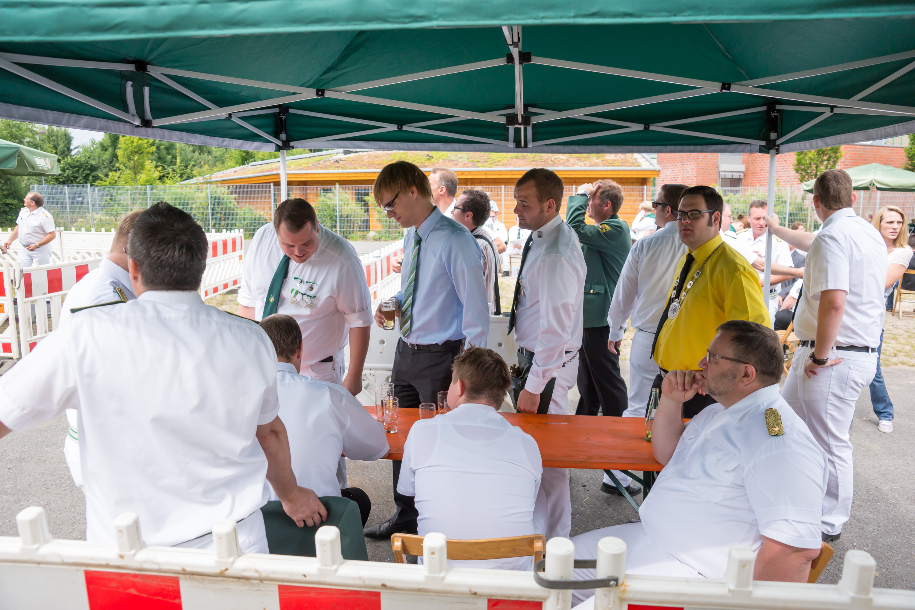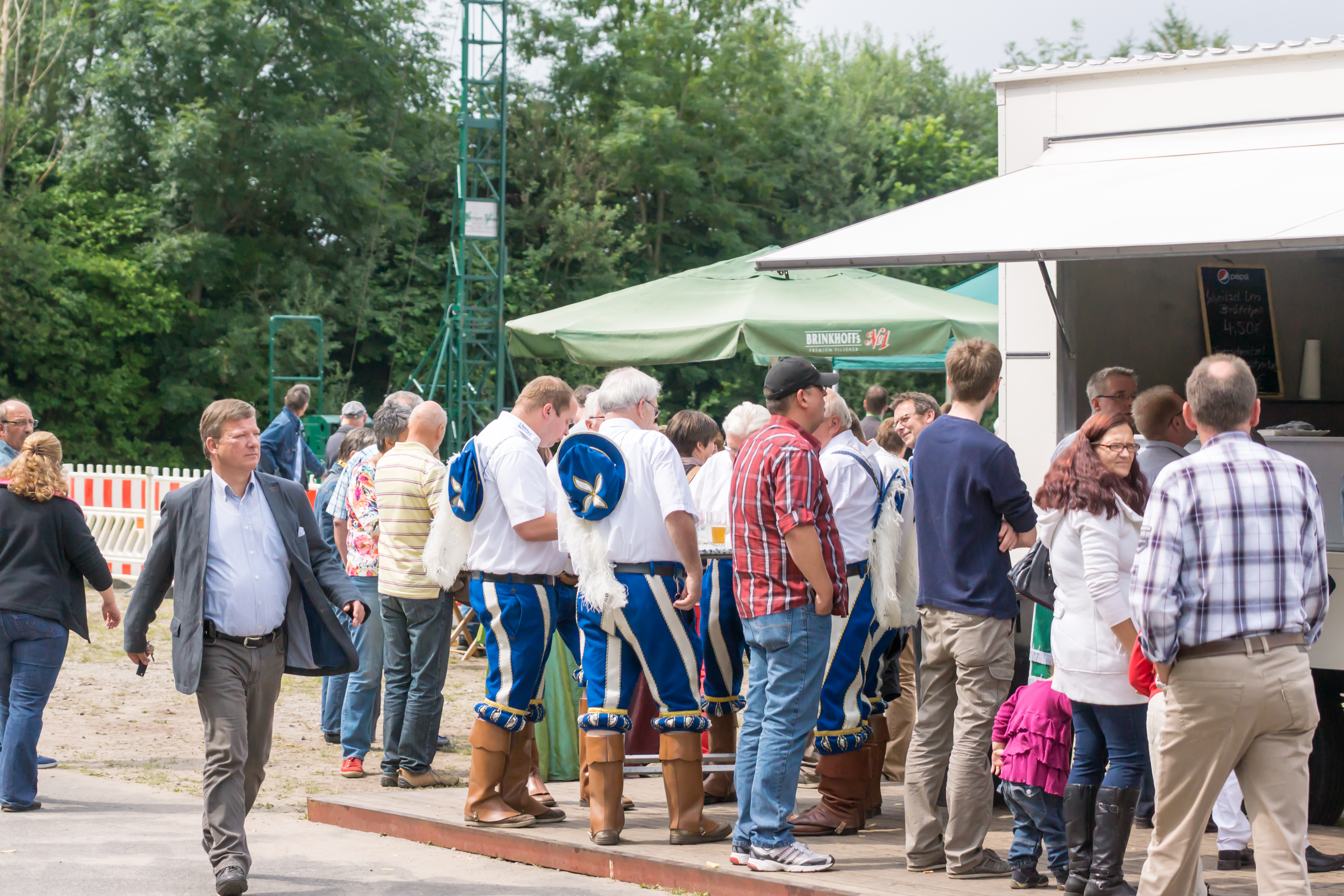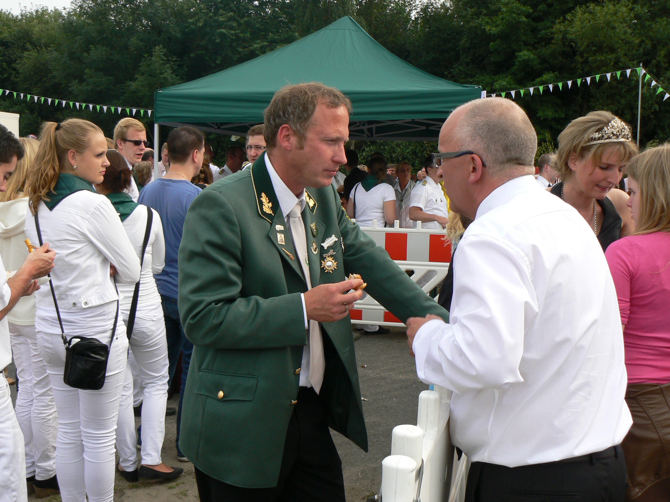 Gute Stimmung, perfektes Wetter, fröhliche Festgäste, kurze Marschwege und kurze Reden, an diesem Nachmittag passte einfach alles für ein gelungenes Jubiläum. Nach den Festansprachen mit Geschenkübergabe und der Totenehrung am Ehrenmal mit gemeinsamer Nationalhymne nutzten am Nachmittag viele Schützenbrüder und Schützenschwestern die Gelegenheit für anregende Gespräche mit Gleichgesinnten aus anderen Schützenvereinen. Dabei wurde auch manche Idee geboren. „Ich habe mich mit Markus Bagert, dem Vorsitzenden der Karthäuser darüber ausgetauscht, dass eine Vorsitzenden-Gesprächsrunde eine gute Idee sei. In diesem Rahmen könnten wir uns über aktuelle Herausforderungen, aber auch über gute Lösungen unterhalten und abstimmen,“ so Volker Dieminger, der sich mit der Beteiligung unseres Vereins und dem Verlauf der Veranstaltung sehr zufrieden zeigte.